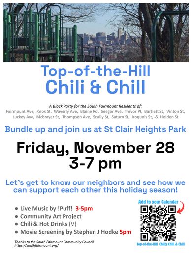Friday Nov 28, 3-7 pm at St. Clair Heights Park